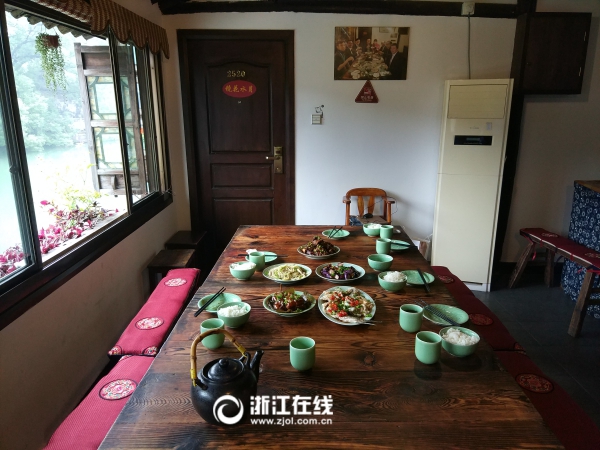 今天中午,老板和老板娘把兩張小木桌拼在一塊,燒了七八個(gè)拿手菜,每道菜都是去年大咖們愛(ài)吃的。浙江在線記者也嘗了幾道菜,“這道粽香東坡肉,用的是烏鎮(zhèn)土豬肉,如果丁磊他們來(lái),還會(huì)換成網(wǎng)易養(yǎng)的豬肉,連豬皮和肥肉都是入口即溶……”老板娘說(shuō)著說(shuō)著,又亮出一套嶄新的青瓷餐具,與眾不同的是,每只碗碟底下都印著網(wǎng)易公司的出品標(biāo)識(shí)。