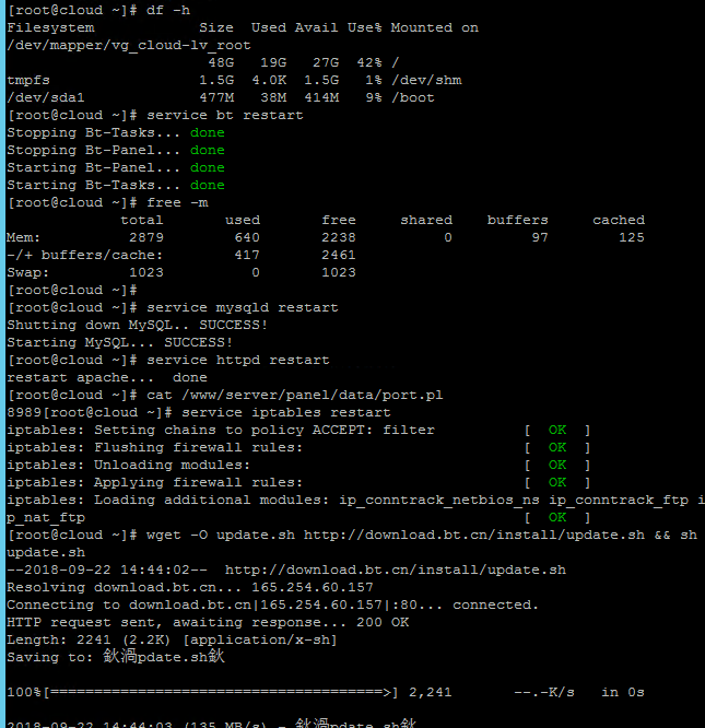寶塔面板不能登陸,重啟面板,數(shù)據(jù)庫,apache,都沒有恢復,寶塔面板大不開,網(wǎng)站正常,端口監(jiān)聽不到,重啟面板也不行