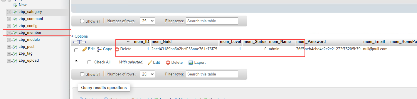 這個(gè)辦法對(duì)于我們稍微熟悉管理PHPMyAdmin數(shù)據(jù)庫的還是可以用的,我們直接登錄數(shù)據(jù)庫然后修改到管理員密碼,他是用到加密的,我們修改成"bd6be664865c41c14304b1228b80294d",然后我們?cè)诘卿浀臅r(shí)候用到"12345678"。