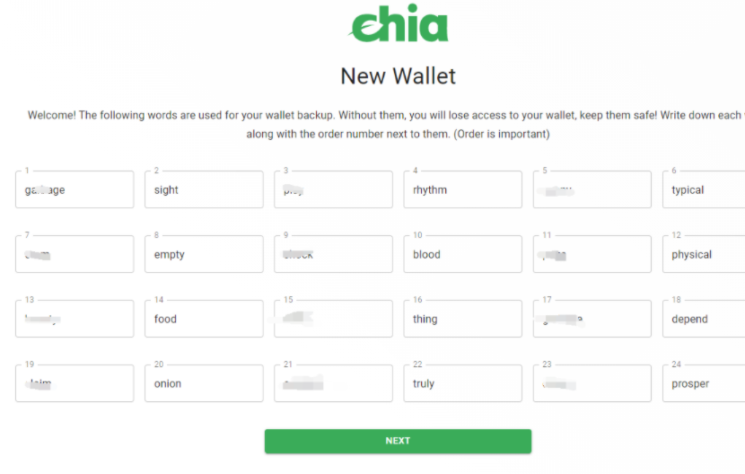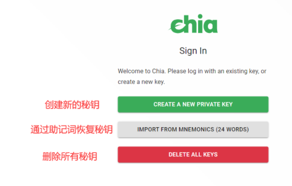 3,安裝完成后Chia重錢包將會自動運行,首次運行需要創(chuàng)建一個新的秘鑰,如下圖;