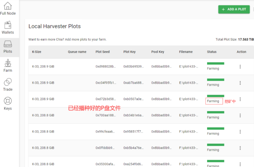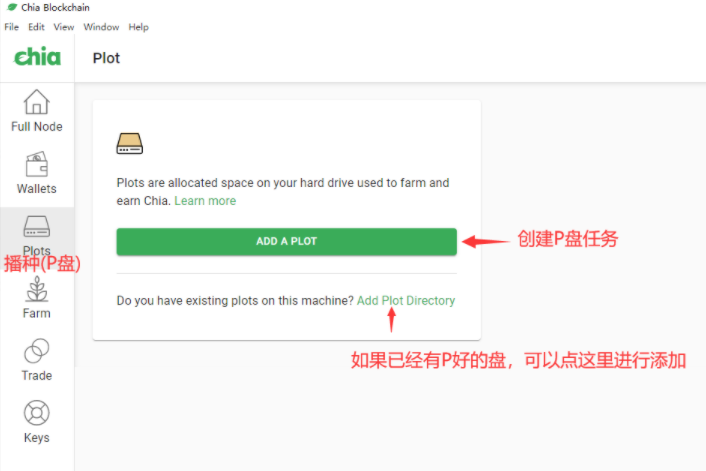 6,點擊左側(cè)Plots菜單進入P盤管理界面,在P盤管理界面點擊 “ADD A PLOT”按鈕創(chuàng)建一個P盤任務(wù)。