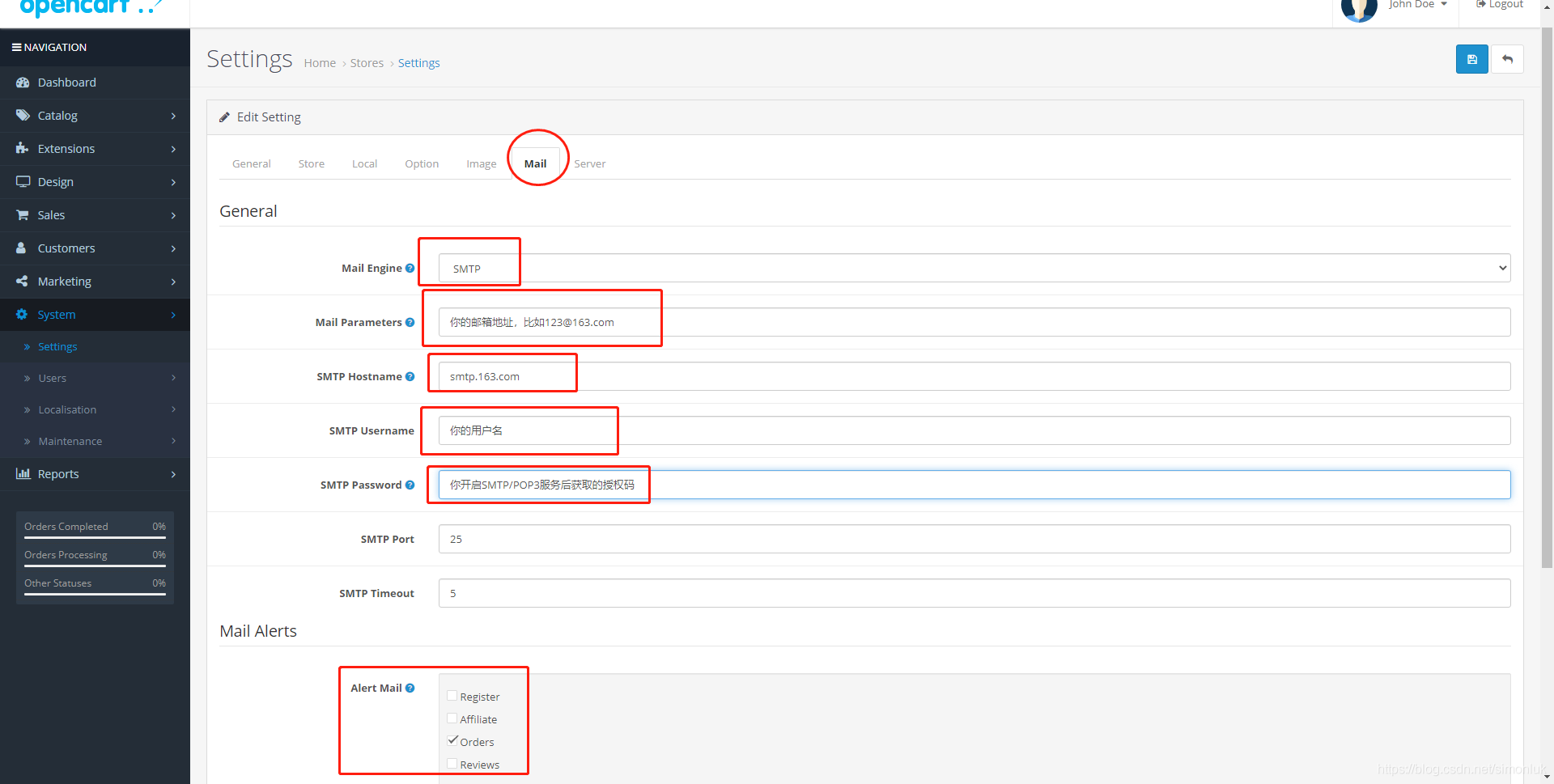 opencart如何配置郵件參數(shù)和郵件提醒