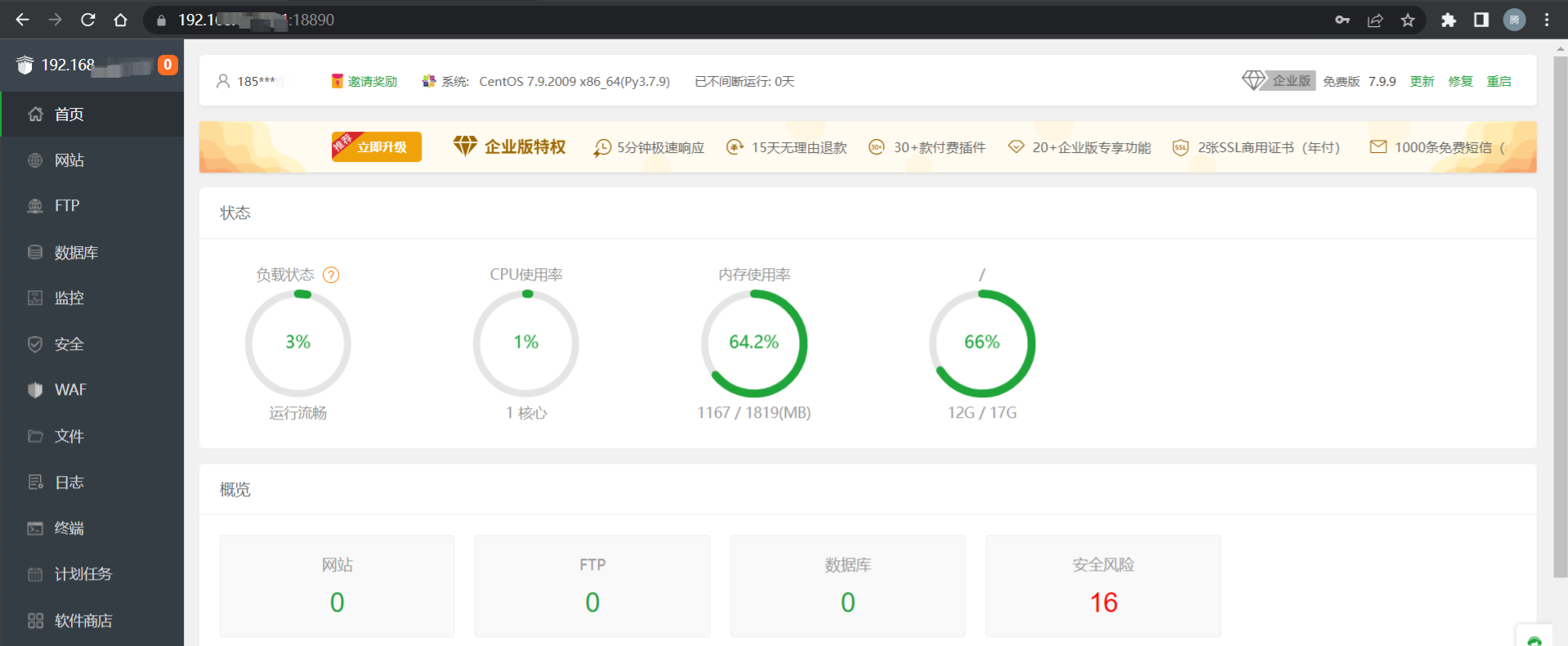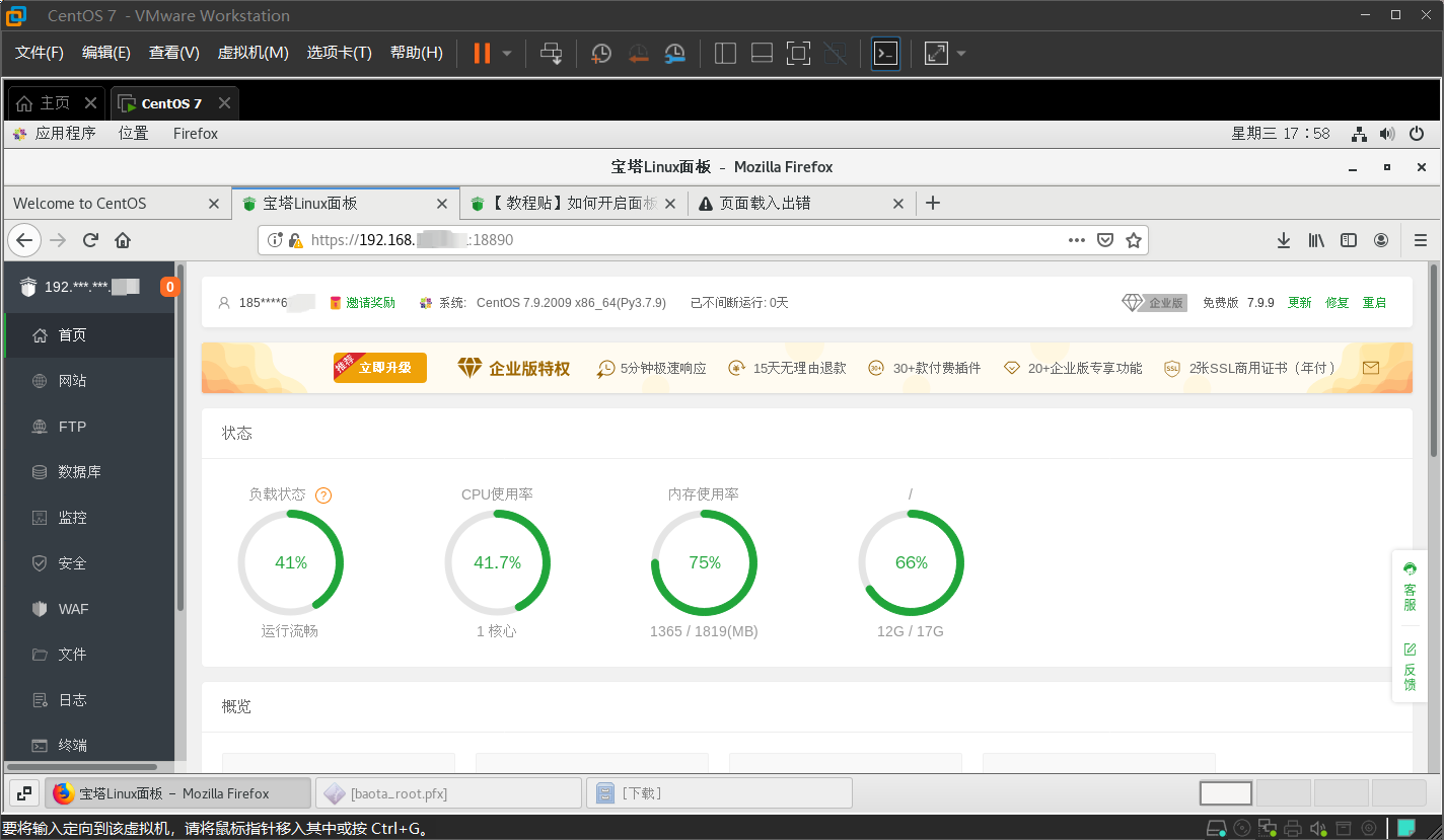 輸入內(nèi)網(wǎng)地址訪問: 本地VMware虛擬機(jī)安裝寶塔面板_本地虛擬機(jī)安裝的寶塔不是8888